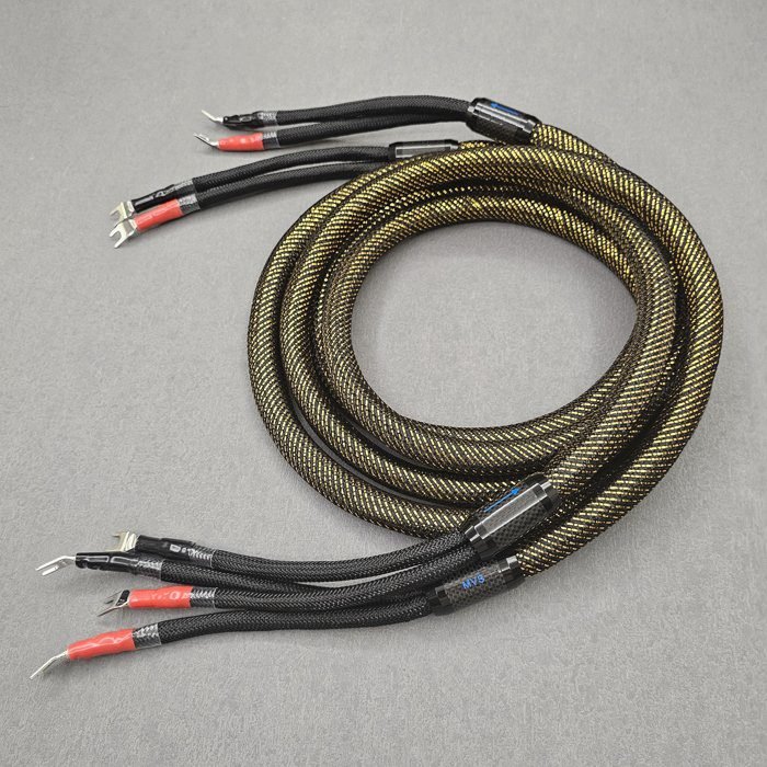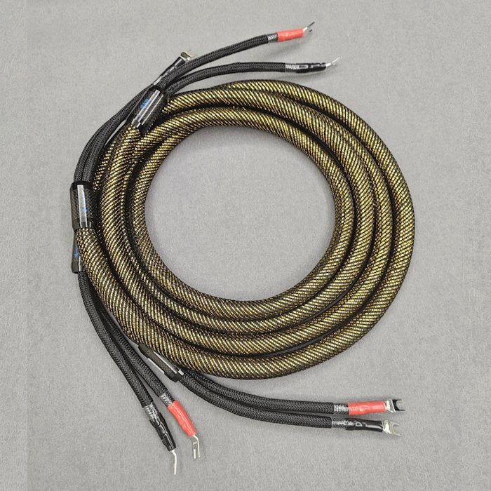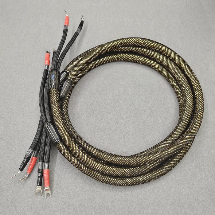 Flagship series speaker cable, built with 22 multiple solid cores of 5N OCC silver wires combined with 2*12GA and 2*20GA of Duelund tinned copper wires per channel, is the best combination for speaker cable. Building this series is difficult and costly, it is the utmost top series of Audiolund multicore speaker cable.