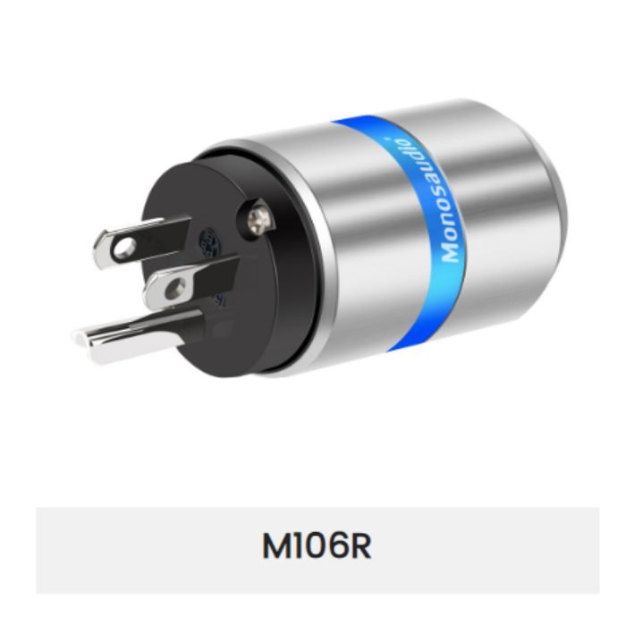 Monosaudio M106R/F106R Rhodium Plated US Power Plugs is a high-end connector uses high quality materials to provide the best possible electrical conductivity. The contacts are made of 4N pure Copper with a 4 Layer Plating Process, Oxygen Free Copper Plated, Silver Plated, Palladium Plated and finally Rhodium Plated.