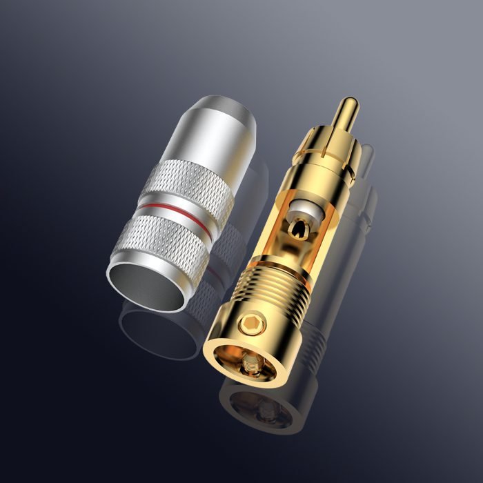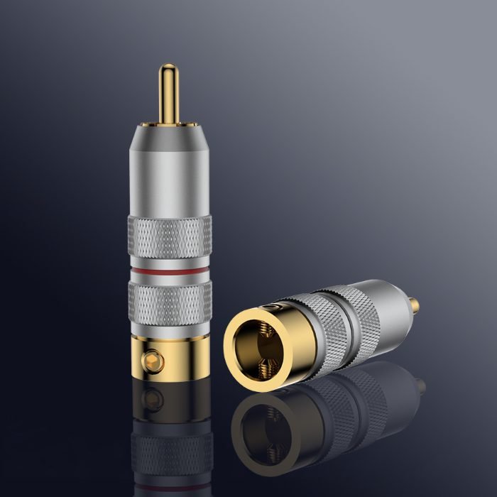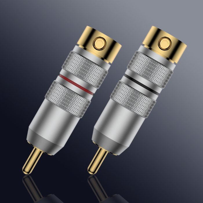This VR107G RCA connectors Viborg with Gold plated pure copper conductor. This model benefits from copper great conductivity which is a long-lasting feature thanks to Gold capacity of protecting conductors without affecting electric signal. This the smallest and lowest cost RCA plug from Viborg.