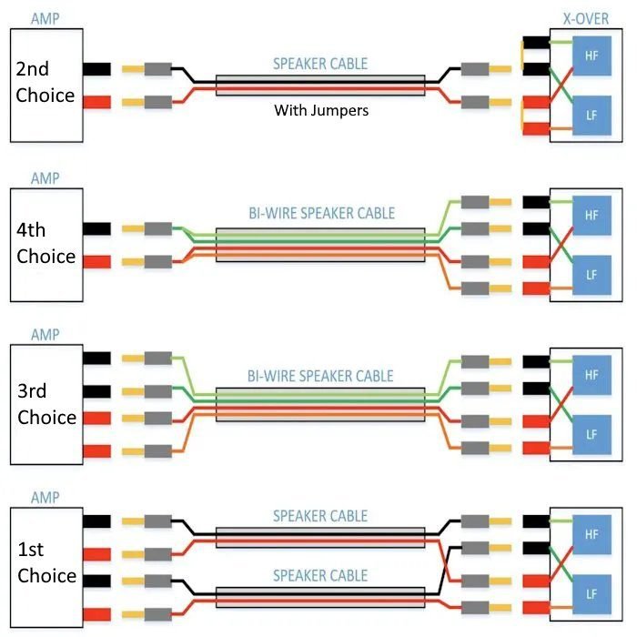 • Use 2*12GA + 2*20GA Duelund tinned copper wires mixed with 5N OCC silver cables in both positive and negative ends of the speaker cable