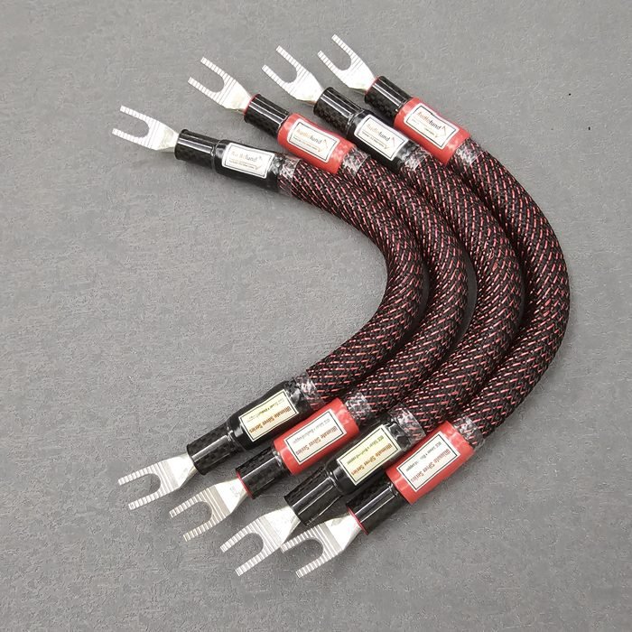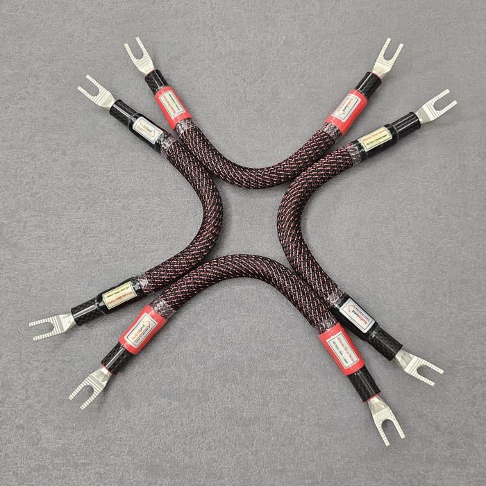 The Speaker Jumper Cable Xtreme Silver Series uses 8 solid cores of 18GA to 32GA per signal path of 5N OCC silver wires mixed with 12GA/20GA of Duelund tinned copper wires. Xtreme Silver Series Jumper will have the best of Xtreme series and True Silver Series, although the sound characteristics are not as distinct as the Xtreme series and True Silver series. Xtreme Silver series has the very comprehensive and almost perfect sound of the Xtreme series, with the sound characteristics of Western Electric. The sound is very natural and smooth with a quiet background, and most importantly, it is very musical. Xtreme Silver series also has the sweet, delicate, powerful and fast dynamic sterling silver sound of the True Silver series.